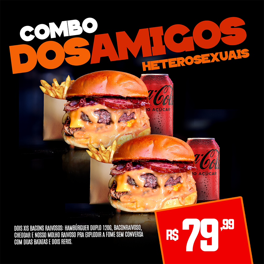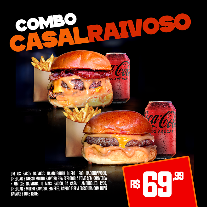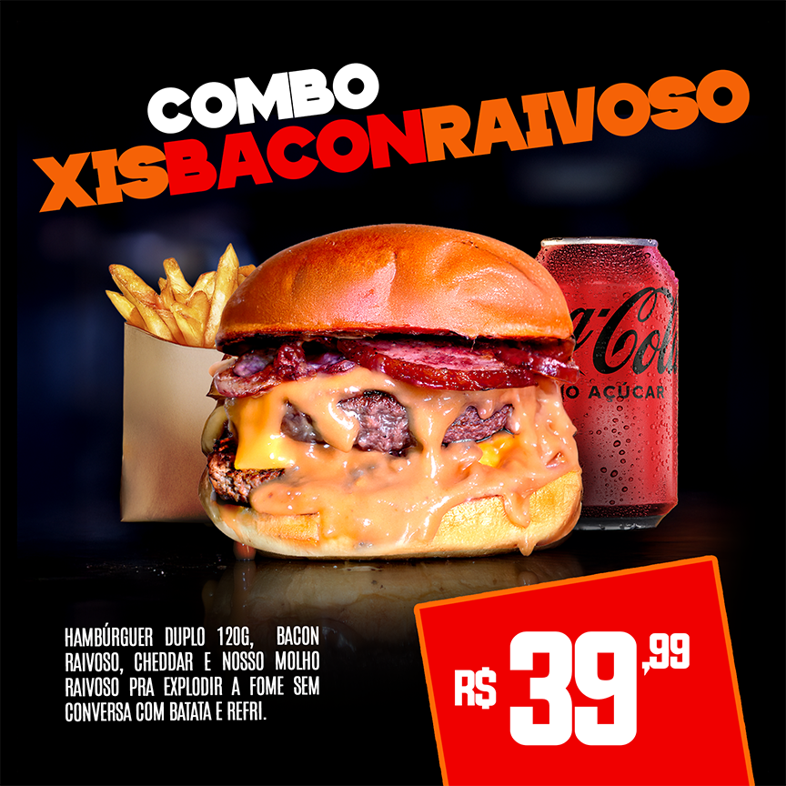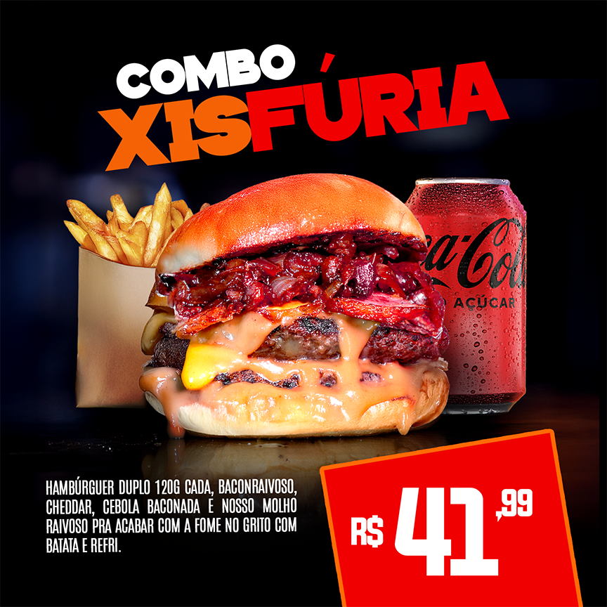 Inclui 2 Xisbaconraivoso, 2 batatas fritas e 2 refrigerantes lata...